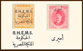 In October 1922, a new overprint, O.H.E.M.S. (On His Egyptian Majesty's Service), and Arabic equivalent, was used to mark